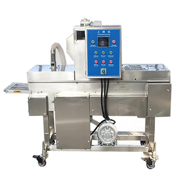 滾筒上粉機(jī)是一種用于裹粉、補(bǔ)粉的機(jī)器設(shè)備,主要用于油炸食品行業(yè)。其主要原理是通過滾筒的轉(zhuǎn)動(dòng),將產(chǎn)品表面裹上一層均勻的裹粉,以達(dá)到酥脆的口感。這種機(jī)器適用于生產(chǎn)小酥肉、鹽酥雞、鍋包肉、雞米花等多種食品。在制作過程中,滾筒上粉機(jī)能夠?qū)崿F(xiàn)多品種共線分流輸送,輸送量大,速度快,能夠提高生產(chǎn)效率。同時(shí),它還具有自動(dòng)補(bǔ)粉、篩分、清洗等功能,使生產(chǎn)過程更加方便快捷。此外,滾筒上粉機(jī)采用獨(dú)特的篩分裝置,能夠?qū)⑸a(chǎn)過程中產(chǎn)生的大顆粒分離出來,避免堵塞。而且,它還具有開合式的提升螺桿和振動(dòng)篩,方便清洗和篩分。同時(shí),滾筒上粉機(jī)還采用直接與油炸機(jī)鏈接的方式,中間不需要任何傳輸設(shè)備,使得生產(chǎn)流程更加緊湊?傊,滾筒上粉機(jī)是一種高效、多功能的食品加工設(shè)備,適用于油炸食品行業(yè)中的裹粉、補(bǔ)粉等環(huán)節(jié),能夠提高生產(chǎn)效率和質(zhì)量。