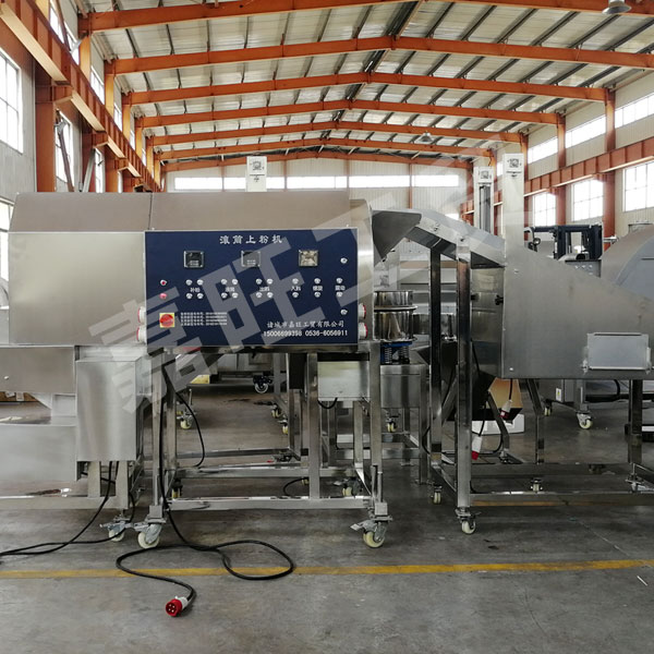 調(diào)整參數(shù):根據(jù)食品的種類和大小,調(diào)整設(shè)備的運(yùn)行參數(shù),如輸送帶的速度、撒料裝置的撒料量等,以確保較佳的裹糠效果。
