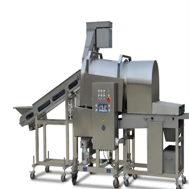 滾筒上粉機設(shè)計上粉簡單,滾筒上粉機,顧名思義,就是通過滾筒的轉(zhuǎn)動開始上粉,這樣可以使得產(chǎn)品表面裹上一層分布均勻的細粉,同時也可以增加產(chǎn)品的上粉的粉量。由于上粉機采用的是滾筒設(shè)計,與上粉機進行直接連接。自動進行補粉,通過振動篩選多余的粉量,不需要任 何中間的傳輸設(shè)備。同時還可以將生產(chǎn)過程中出現(xiàn)的大顆粒粉粒分離出來,再也不用擔心產(chǎn)品的褶皺處或者是凹凸分布不均的部分裹的粉不夠均勻。特別適合用于一些固塊狀產(chǎn)品的上粉,小吃類的就有雞米花等多種。
