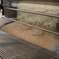 適用場景:塊狀或不規(guī)則物料,通過旋轉(zhuǎn)使粉料滲透到褶皺處,裹粉均勻度達95%以上。
