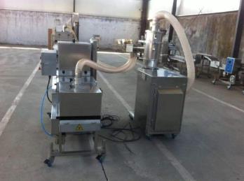 根據漿料濃度的不同平板上粉機分為浸入式平板上粉機和淋漿平板上粉機兩種,淋漿平板上粉機采用自動上漿方式,該機通過漿料泵把漿液從漿池內輸送至淋漿系統,繼而形成瀑布式淋漿對產品進行裹涂;浸入式平板上粉機因所使用的是濃漿,故需用上下兩層輸送網帶夾持產品浸入漿內,使產品充分均勻上漿,而不在漿內翻滾。出口端的風刀,將根據產品上漿厚度要求,吹除多余漿料。對于不同厚度的產品,可通過調節(jié)螺桿來調整主網帶和上網帶之間的距離。